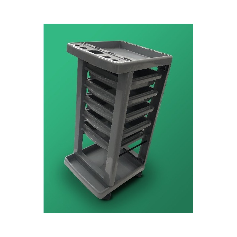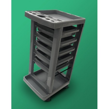 Ucenic coafor cu 5 sertare pentru depozitare si suprafata pentru vopsit. Culoare gri inchis.