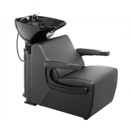Unitate de spalare cu bazin ceramic, reglabil, culoare negru, complet echipat cu baterie, furtune, dus, scurgere.